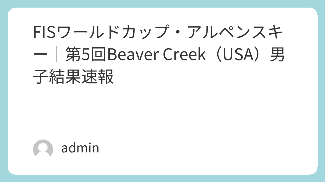 FISワールドカップ・アルペンスキー|第5回Beaver Creek(USA)男子結果速報